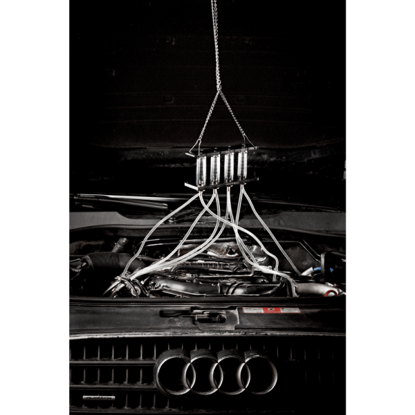 El sistema está preparado para trabajar en motores de hasta 8 cilindros, ofreciendo un diagnóstico completo en una sola operación. Sus cámaras de policarbonato graduadas permiten una lectura clara y comparativa entre cilindros, mejorando la rapidez y precisión del análisis.