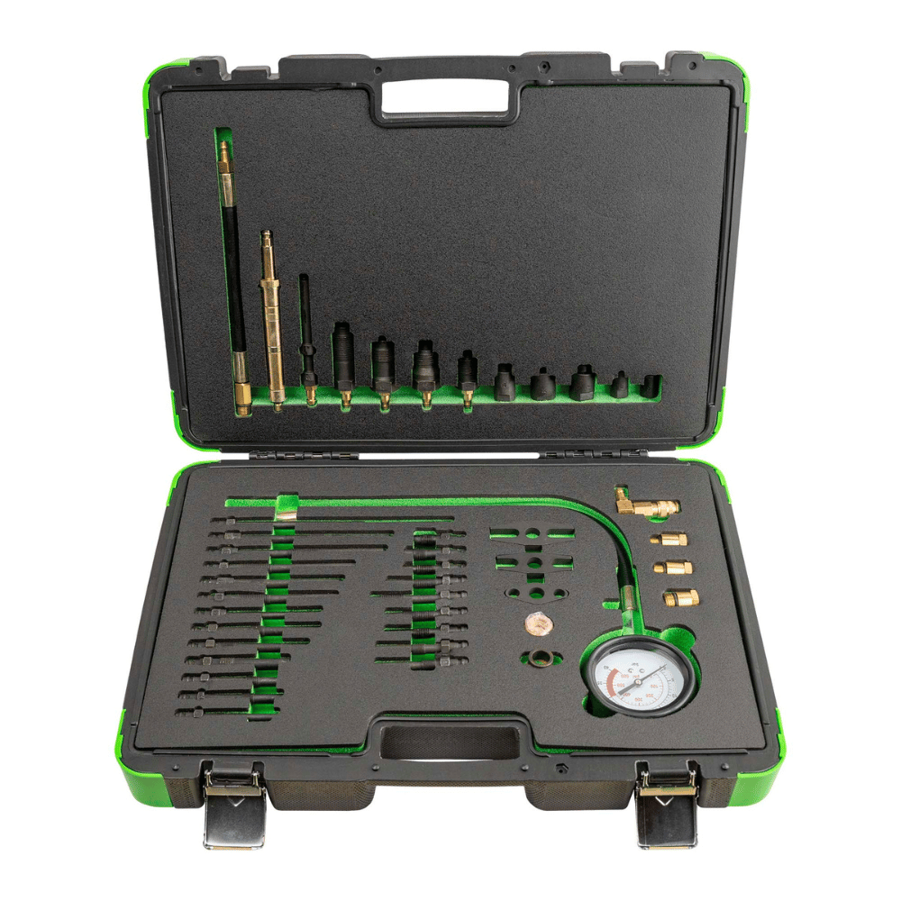 Este completo kit permite detectar problemas como pérdida de compresión, desgaste de segmentos, fallos en válvulas o falta de estanqueidad, evitando diagnósticos erróneos y sustituciones innecesarias de componentes.